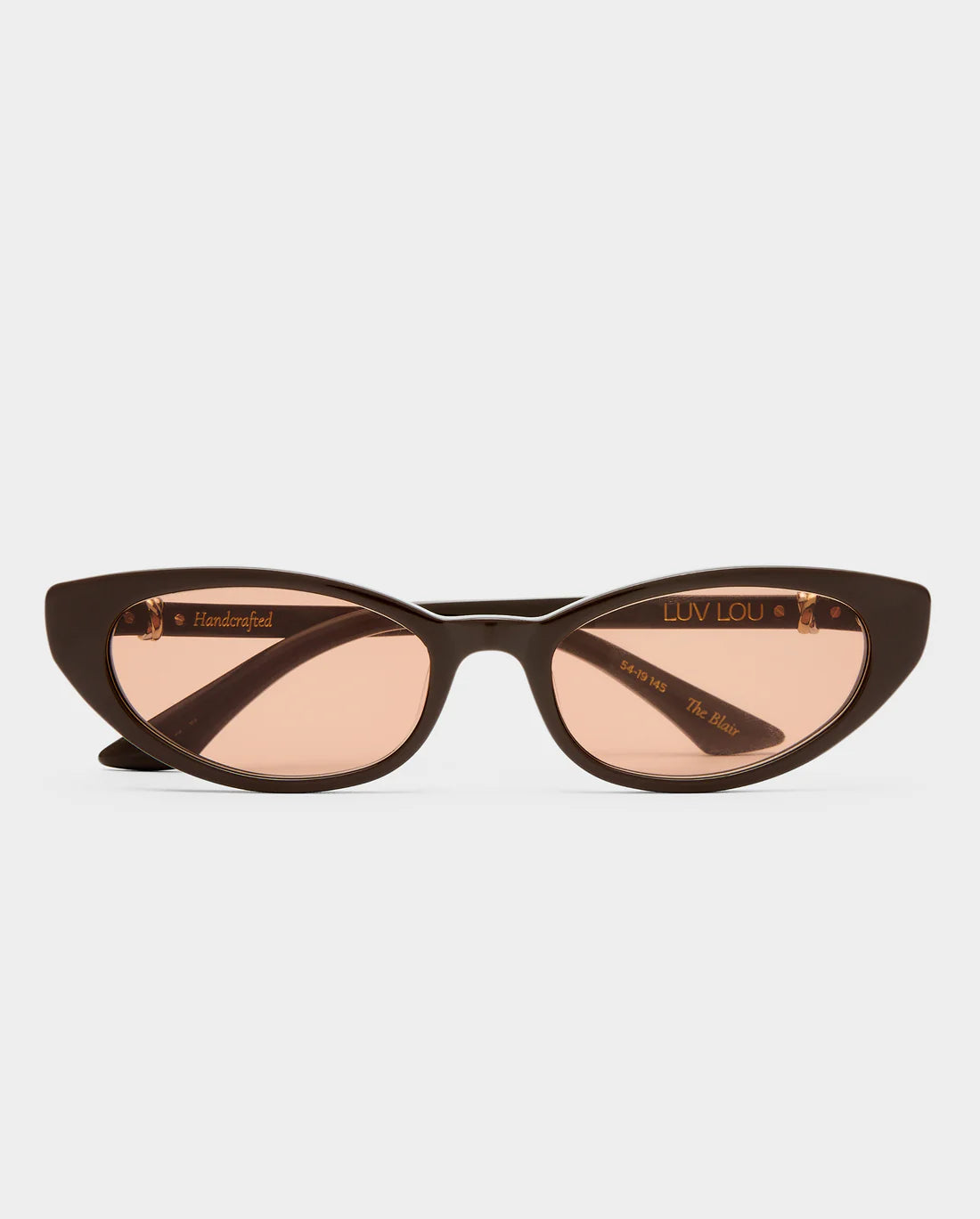 A perfect balance of sharp and sophisticated. The Blair is a micro cat-eye frame with a sculptural feel - featuring fine temples adorned with a twisted rope gold hardware that adds texture and a touch of vintage romance.