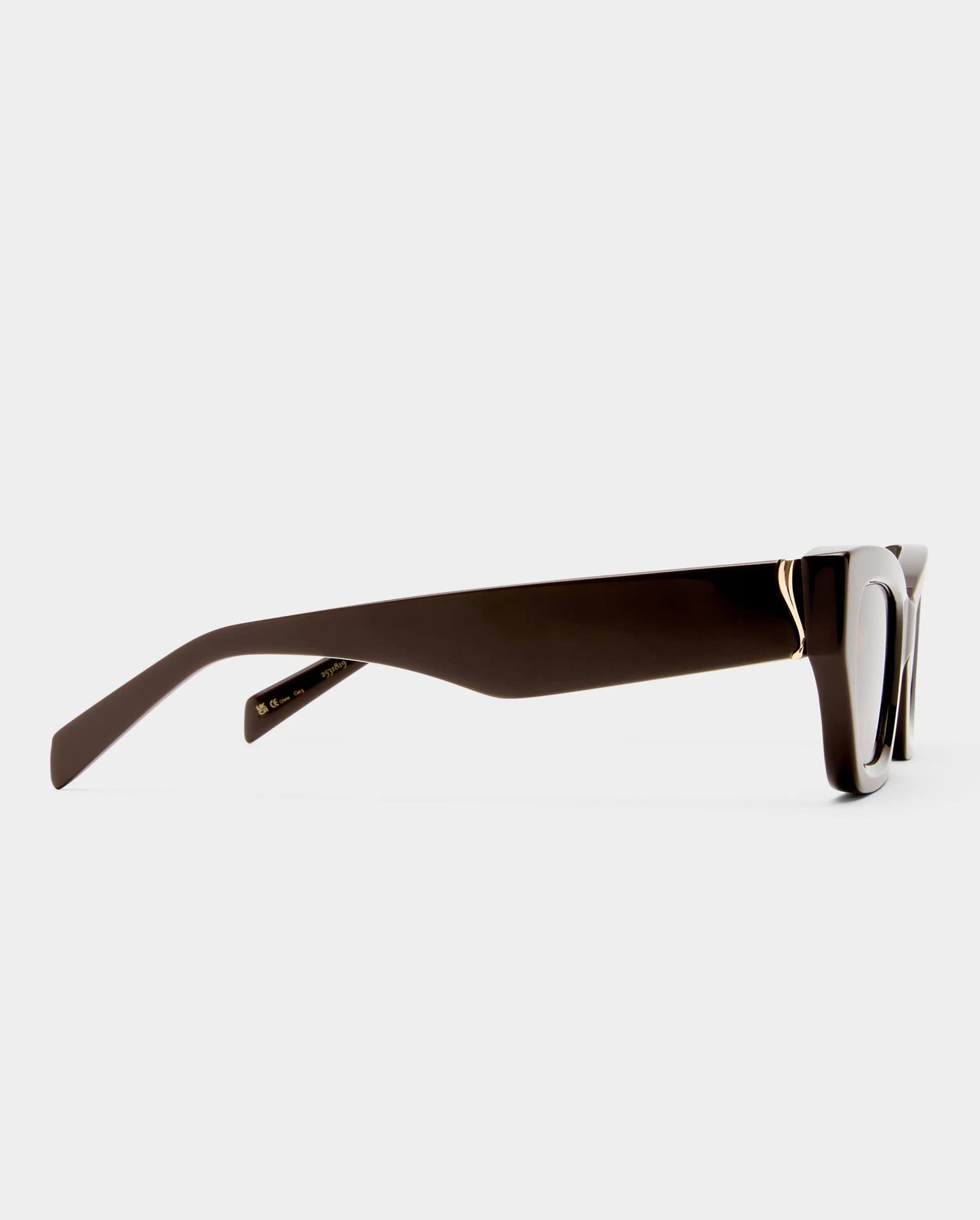 Bold in all the right ways. The Sutton is a wide cat-eye frame with sharp lines and thick temples, balanced by subtly curved metal detailing that adds a refined touch. Designed to frame the face with confidence, this style is equal parts statement and staple.