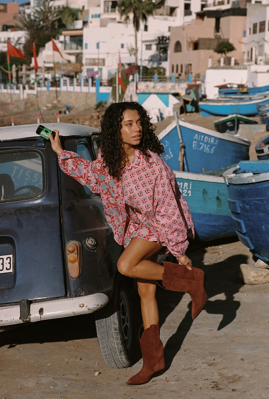 The Kamala Block Print Chalm Shirt is an easy, relaxed silhouette designed for effortless everyday wear.