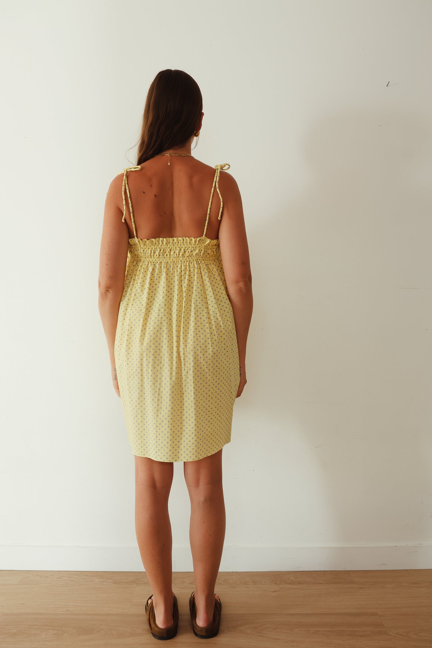 Designed in our playful butter yellow polkadot print, it’s the perfect throw-on style