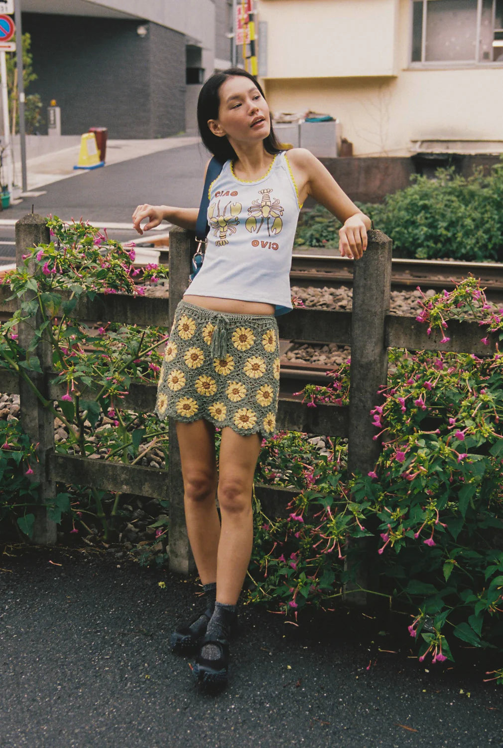 THE FIT IS EASY AND SLIGHTLY CROPPED, DESIGNED TO SIT NEATLY AT THE WAIST. PERFECT FOR PAIRING WITH CROCHET MINIS, WIDE BEACH PANTS, OR YOUR FAVOURITE DENIM.