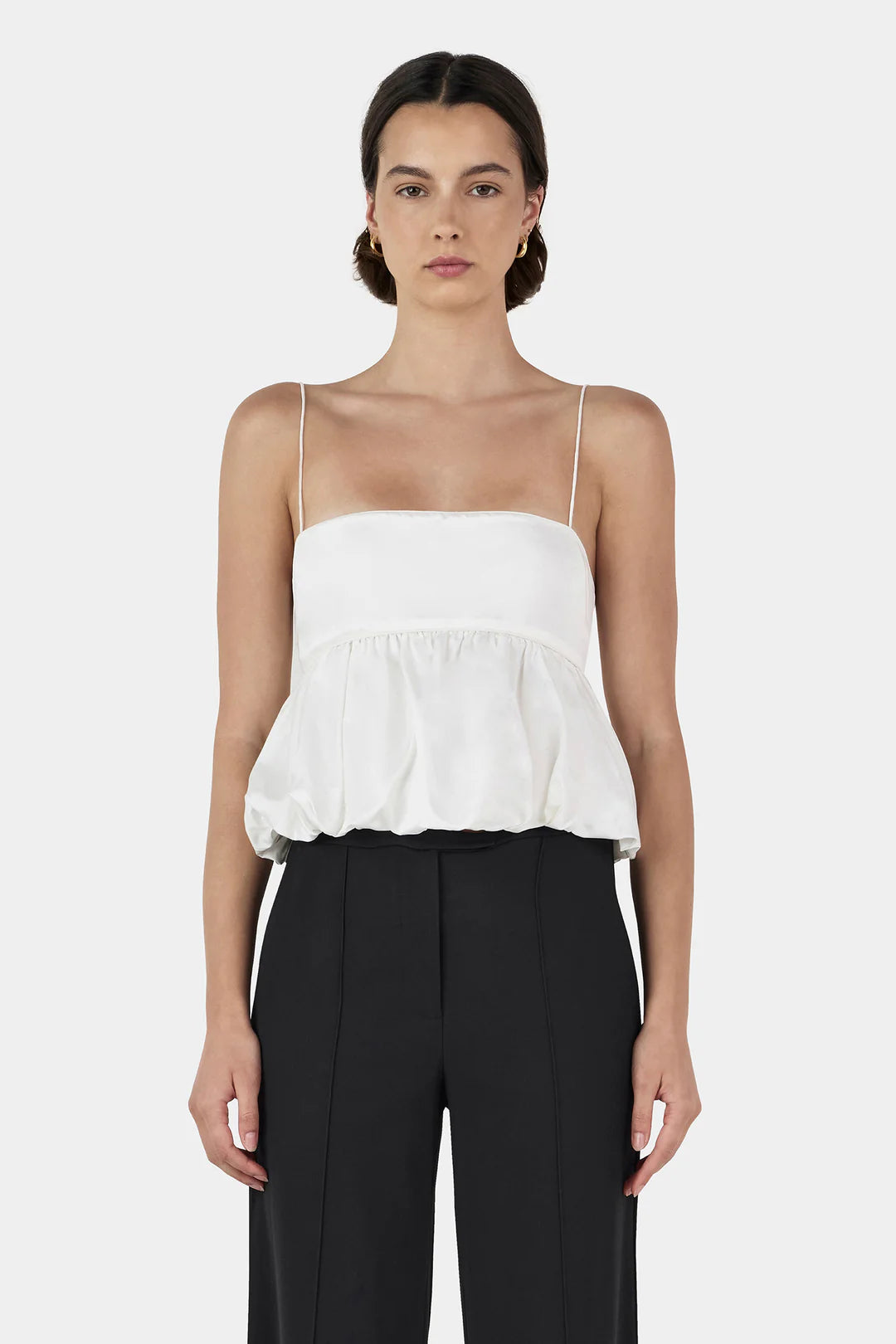 The Amadine Top is a bubble hem top featuring a fitted, lined bust panel with princess seams at the front and back for a structured fit. Boning at the side seams adds extra support, while a hook-and-eye closure runs down the centre back. The voluminous bubble skirt is gathered at the underbust and finishes at the high hip for a playful, sculpted shape.