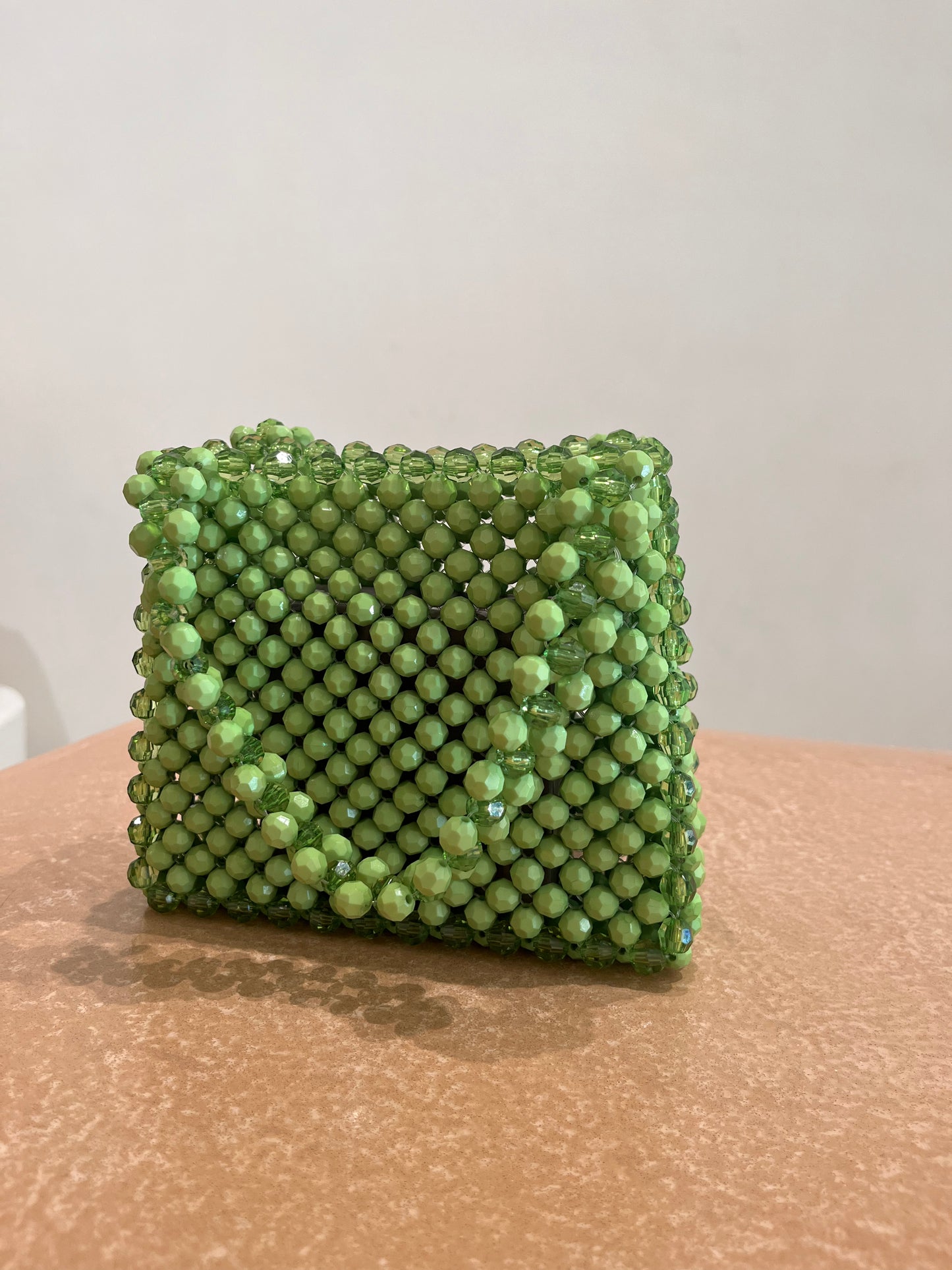 Sweet, sparkly, and impossible to miss. The Lola is a hand-beaded beauty in candy apple green, designed in a bold, boxy shape that brings major retro vibes. It adds instant fun to any outfit—perfect for parties, brunch dates, or just because.